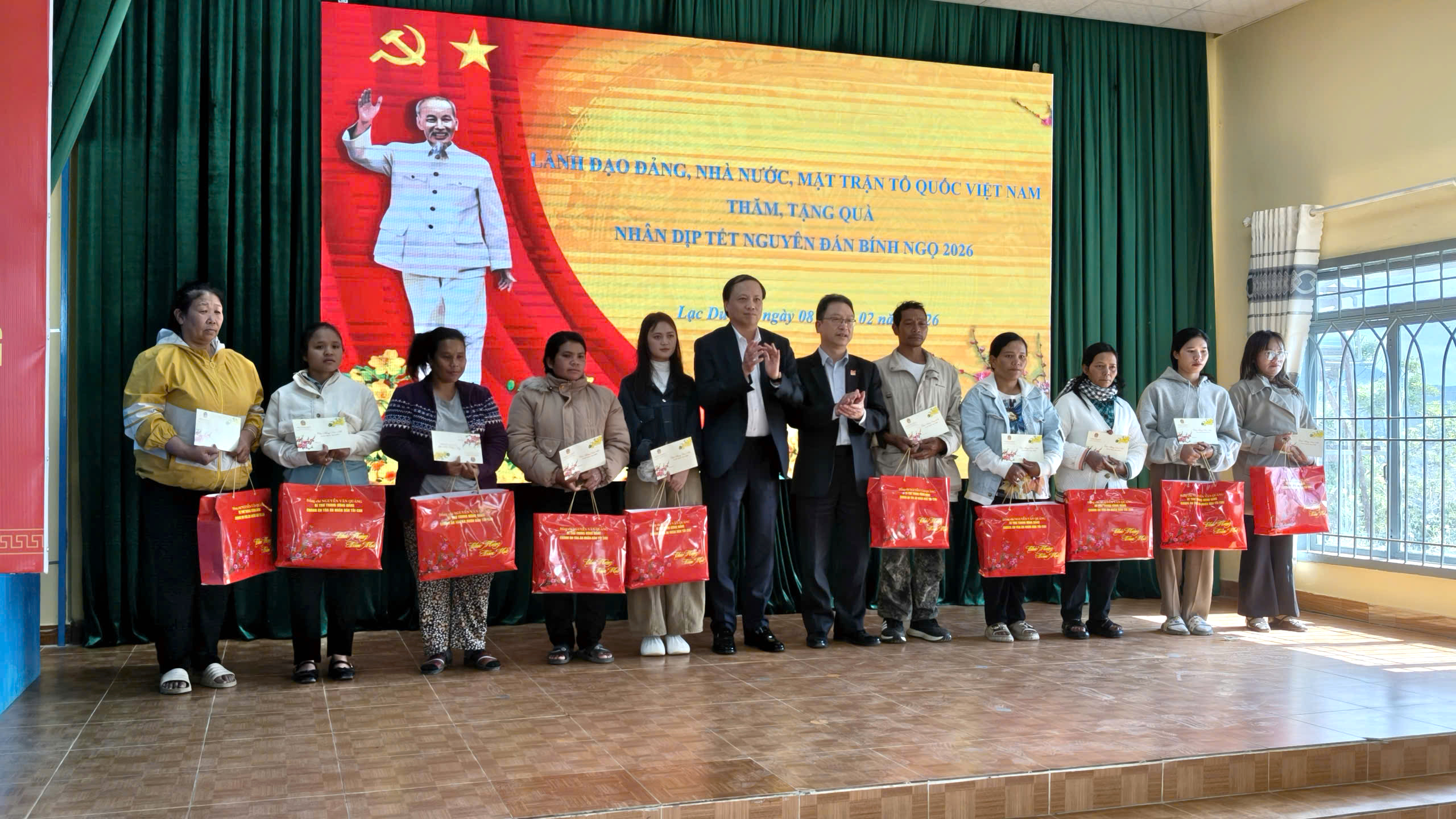 Dịp này, đồng chí Nguyễn Văn Quảng, Bí thư Trung ương Đảng, Chánh án TAND tối cao và lãnh đạo tỉnh Lâm Đồng đã trực tiếp trao tặng 50 suất quà Tết cho các hộ nghèo, hộ cận nghèo, hộ có hoàn cảnh khó khăn trên địa bàn xã Lạc Dương. Ngoài ra, 150 suất quà còn lại được Đoàn ủy quyền cho xã Lạc Dương trao tặng cho các đối tượng yếu thế trên địa bàn xã, đảm bảo quà tặng chuyển đến tận tay đối tượng thụ hưởng trước Tết Nguyên đán Bính Ngọ 2026, để người dân có điều kiện đón Tết vui tươi, đầm ấm.