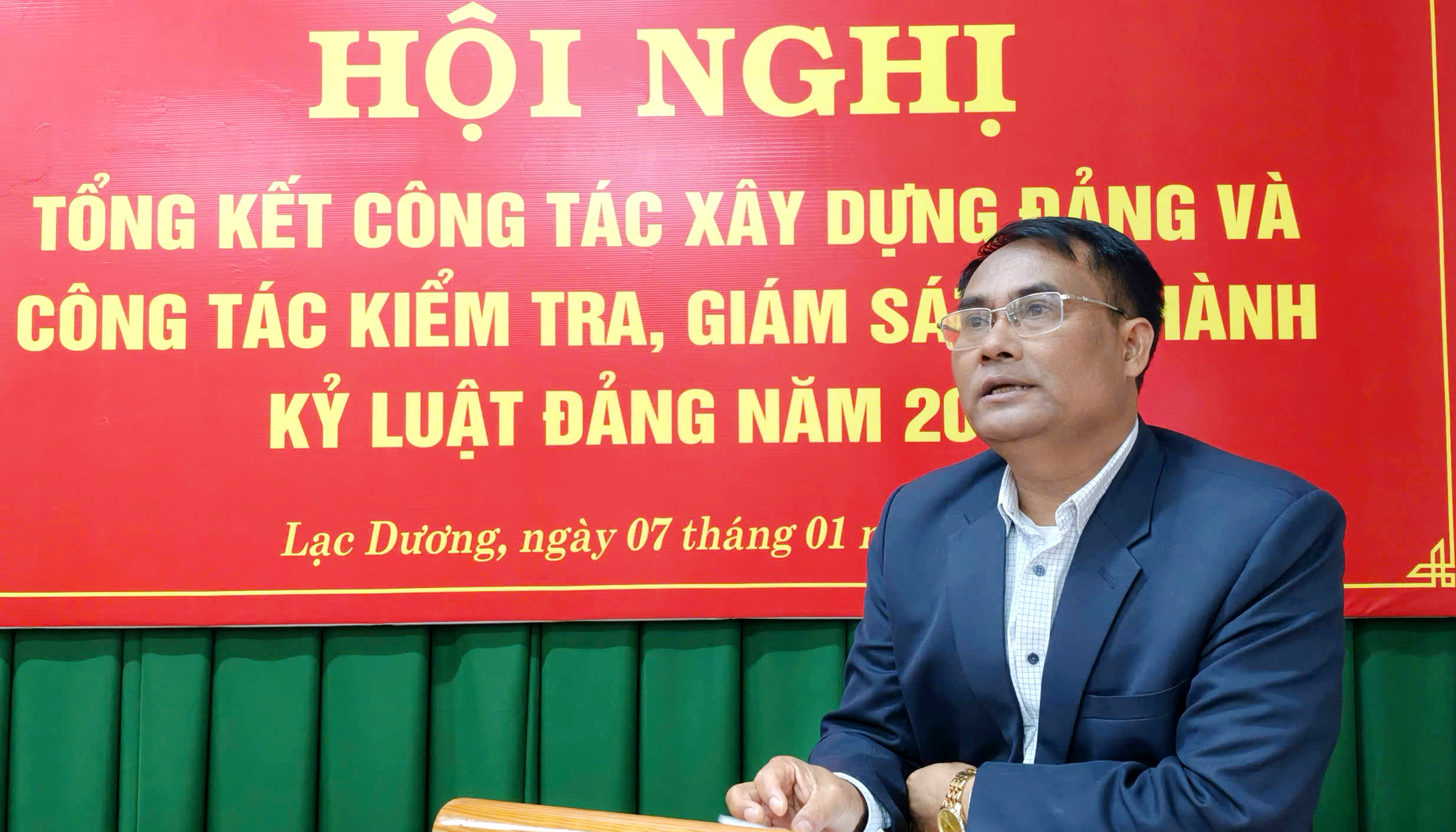Phát biểu chỉ đạo tại hội nghị, đồng chí Ya Tiong, Bí thư Đảng ủy xã ghi nhận và đánh giá cao những kết quả đạt được của Đảng bộ UBND xã trong năm qua. Đồng chí nhấn mạnh: năm 2025, năm đầu tiên vận hành mô hình chính quyền địa phương 2 cấp, mặc dù còn nhiều khó khăn nhưng Đảng bộ, chính quyền và nhân dân xã Lạc Dương đã đoàn kết, nỗ lực thực hiện thắng lợi các nhiệm vụ đề ra, được cấp trên ghi nhận đánh giá cao, nhất là về công tác Đảng, thu ngân sách Nhà nước, giữ vững ổn định an ninh chính trị địa bàn. Kết quả này là sự đoàn kết nỗ lực của cả hệ thống chính trị, trong đó có sự đóng góp không nhỏ của tập thể Đảng ủy UBND xã.