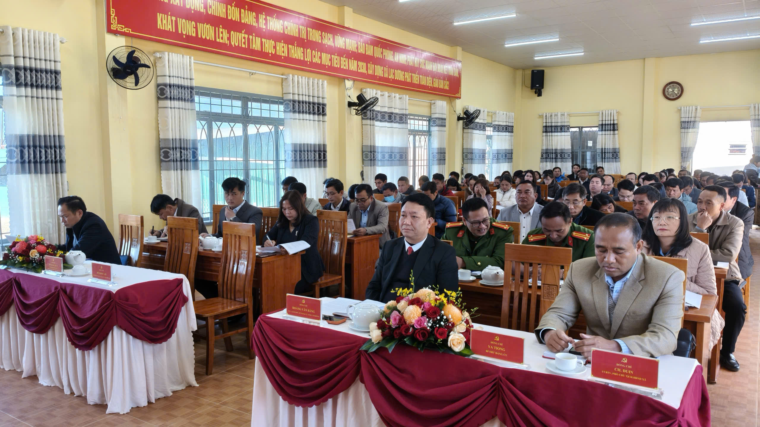 Đồng chí: Ya Tiong, Bí thư Đảng ủy xã; Đỗ Khắc Lợi, Phó Bí thư Thường trực Đảng ủy, Chủ tịch HĐND xã; Bùi Quốc Huân, Phó Bí thư Đảng ủy, Chủ tịch UBND xã Chủ trì hội nghị