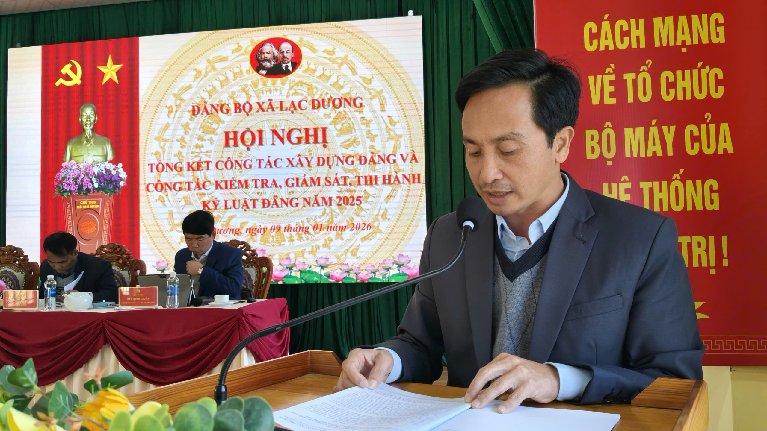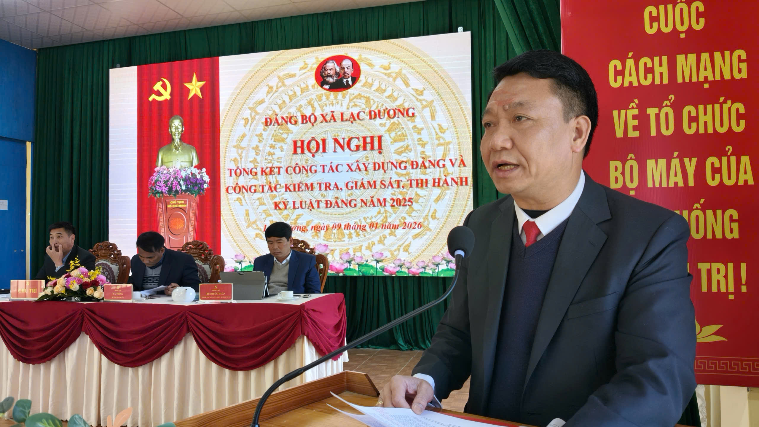 Cuối tuần qua, Đảng ủy xã Lạc Dương đã tổ chức Hội nghị tổng kết công tác xây dựng Đảng và hệ thống chính trị; Công tác kiểm tra, giám sát và thi hành kỷ luật Đảng năm 2025, triển khai nhiệm vụ năm 2026. Đến dự và chỉ đạo Hội nghị có đồng chí Hoàng Văn Bằng, Giám đốc Sở Ngoại vụ tỉnh Lâm Đồng.